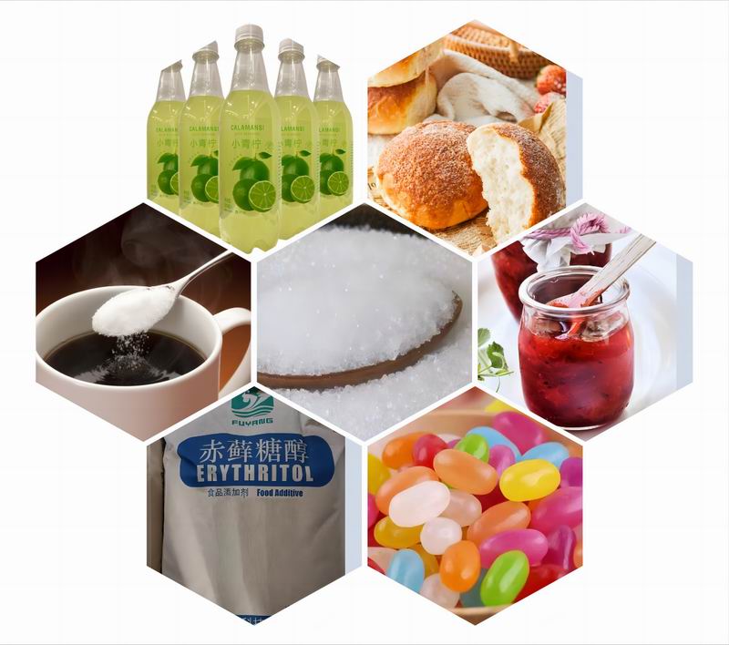 Erythritol Powder Sweeteners Sugar Substitute Introduction of Erythritol In Food Erythritol is used in food as sugar substitute in Milk, Yogurt, Ice cream, Cheese, Cakes, Biscuits, Pastries, Chewing gum, Hard candies, Soft candies, Jelly, Protein powder, Chewable Tablets, Oral liquid. In Beverages Erythritol is used in diet soft drinks, flavored waters and milks, sports drinks, smoothies, iced teas, frozen beverages and soy-based beverages. Carbonated beverage, Non-carbonated beverage, Dairy drinks. In Pharmaceutical Erythritol is used in Solid dosage forms: Tablets, Coating agent, Lozenges, Diluent in wet granulation; Liquid dosage forms; Medicated confectionery, Medicated chewing gum in pharmaceutical. In Health and Personal care Erythritol is used in Colour Cosmetics, Deodorants, Hair Care, Oral Care, Skin Care, Soap and Bath Products In Agriculture/Animal Feed/Poultry Erythritol can be used in animal feed/poultry feed. In Other Industries Erythritol can be used in Detergents.
